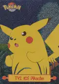 - 2nd printing: black logo on all cards, Pokémon foil cards were debossed with rays and starbursts, while TV cards had a sandpaper finish.
