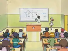 - A class that has a classroom with a huge TV screen to receive lectures via videophone from authorities like Professor Oak. It is taught by Roxanne, and sometimes the students have field trips. They also have Pokémon battle training where they choose one random Pokémon for the battle.