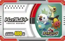 Tretta Reports (Japanese: トレッタレポート) function in a similar manner to Memory Keys in Pokémon Battrio. Sold at a retail price of ¥500, they are not necessary to play the game but add a personal element and supplementary features to it. Tretta Reports are IC cards, similar in size to credit cards, and have a limit as to how many times save data can be recorded on them. Current varieties of Tretta Reports have a range of between 100 and 400 saves. Once the maximum allocation of data saves has been reached, players can transfer the data to a new Tretta Report.