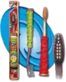 The Pokémon Grip 'Ems are a set of toothbrushes under Colgate's Grip 'Ems label in 2001.[1] Unlike normal toothbrushes, these have a rubber, non-slip grip to hold on to. This brush can also stand up on its own. Bundled with each brush is a 3D Pokémon transforming character sticker.