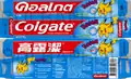 Pokémon Anticavity Toothpaste is a kind of toothpaste produced by Colgate. It comes in three varieties, each featuring artwork of different respective Pokémon on the packaging and different flavors: the Pikachu Bubble Fruit variety, the Charmander Orange variety, and the Squirtle Strawberry variety.[3] The toothpastes are specially designed for children ages 3-8, and come in tubes of 40g and 90g. The Pikachu Bubble Fruit toothpaste itself is blue in color.