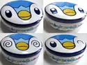 Pokémon Do Your Best, Piplup Face Biscuits were biscuits exclusive to Pokémon Centers and were sold in March, 2010.[24] They were part of the "Ganbare Piplup" campaign that was going on at the time. They came in metal containers with one of four Piplup faces painted on it: happy, sad, winking, and tired. On the side of each container, there were designs consisting of music notes and stars. The biscuits inside were shaped as the face of Piplup, and expired in September 2010.