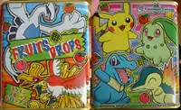 Pokémon Fruits Drops were a candy product distributed by the Pokémon Center of Tokyo.[26] They were packaged in a tin, featuring images of Lugia and Ho-Oh on the front, Pikachu and the Johto starters on the back, with miscellaneous images of fruit on both sides of the tin.
