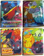 For a limited time in April 2010,[27][28] Fruits Drops were available in two different tins showing Zorua and Zoroark on the front. On the back of one tin, there are images of Entei, Raikou, and Suicune. On the back of the other, Celebi, Pikachu, and Zorua were shown.