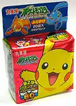 The packets of furikake came in a box five at a time with a tiny character prize in each box. The color denotes the flavor and the boxes’ graphics changed often. There were random Pokémon species featured on each side of the packet. The product was released in 1998.[15]
