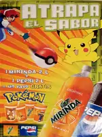 Pokémon Mirinda was a limited-edition version of Mirinda soda. Released in Argentina during Generation I, it was sold at the price of 0.50 ARS per can and seems to have only been available in the flavor of orange. Each can showed an image of a Pokémon or a human character from the anime. There is also a former promotion in which, after the purchase of a Mirinda two-liter and a Pepsi two-liter, the buyer receives a plastic cup which has a similar design to the special cans of Mirinda.