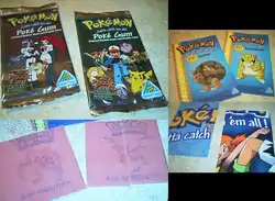 Poké Gum, produced by Toymax International under the Candy Planet label, is a chewing gum product featuring Pokémon artwork. The wrappers have two editions, with one consisting of Ash, Misty, Brock, Ash's Pikachu, Misty's Psyduck, and the Jigglypuff prone to following the group in the Kanto saga. The other edition is of Team Rocket and Meowth with a Haunter.