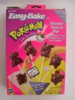 Pokémon Easy-Bake Set was a set of materials used to bake Pokémon-shaped candies manufactured in 2000 by Hasbro. The set included two powdered chocolate mixes; six paper sticks; six clear bags; a molding tray featuring Pikachu, Togepi, Elekid, Marill, Bellossom and Jigglypuff; and assorted sticker tags featuring the same Pokémon.
