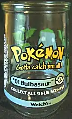 Pokémon Jelly Jars are collectible jars decorated with Pokémon characters to encase Welch's grape jelly. Sold for the first time on April 1, 2000,[11] the jars include designs of one of nine Pokémon. These Pokémon were Pikachu, Togepi, Clefairy, Bulbasaur, Meowth, Squirtle, Charmander, Psyduck, and Poliwhirl. This is Welch's 25th set of collectible jelly jars, and like the other cartoon characters' jars, are used to reflect the popular culture of each generation. The jars contained nine ounces of jelly, and over nine million of them were produced.