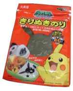 Pokémon Diamond & Pearl Kirinuki Nori is a product consisting of nori that is precut to Pokémon-themed designs, with the intention of being placed onto rice.[9] There are four sheets each of Pikachu, Munchlax, and Eevee-shaped seaweed, along with twelve star-shaped and eight lightning bolt-shaped sheets.