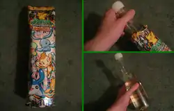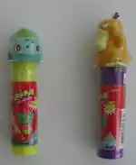 Pokémon Tube Top With Candy is a plastic tube filled with candy manufactured by Bartons Candy.[45] A figure of either Chimchar or Turtwig is at the top of each tube. Yellow, red, green, and blue candies are included with each tube.