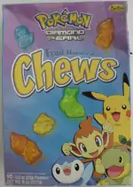 Pokémon Chews are fruit flavored gummy candies manufactured in 2007 by Bartons Candy. They are available in the shapes of Pikachu and the Sinnoh starters.