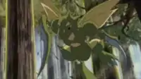 | The Pokémon poacher called on his Scyther to capture Celebi, however it escaped by time traveling into the future with Sam.