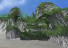 At the beginning of the Beach is an unusual rock formation, which at first does not appear any different then any other rocks on the course. However, from a certain angle, the moss covered rocks and the wooden structure behind them line up and creates the illusion of a Kingler.