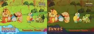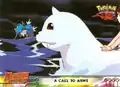 - Many cards, such as #32 "The Battle Renewed", feature scenes from the original theatrical version of the film, not the kanzenban edition that included scenes that were specifically reanimated for North American audiences. This is likely a result of the cards being created before the English version of the movie was completed, considering the cards also did not feature finalized names for Donphan, Snubbull, and Marill.