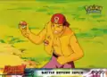 Battle Before Lunch | Although Ash may be too tired to help fix lunch, he is not too tired to accept a Pokémon battle challenge! A wandering Pokémon trainer comes looking for a trainer named Ash from Pallet Town. He soon finds Ash ready and willing to leap into battle. Misty and Brock joke that at a Pokémon battle there is some progress...at least his mouth is working. |