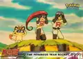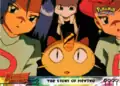 The Nefarious Team Rocket | Little do our heroes know that while Ash is having his Pokémon battle and Misty and Brock are preparing their scrumptious lunch, The Boss has once more sent the bungling terrible trio that is Team Rocket—Jesse, James and Meowth—out to steal rare Pokémon and spy on them. But all that they can think of is the rumbling in their stomachs! James states it best when he says, "I'd settle for a bit of that Pika-chow!" |