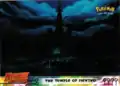 The Temple of Mewtwo | After the heart-stopping adventure through the waves, our heroes finally arrive within the eye of the storm. As they look about them, they see the Temple of Mewtwo on the recently rebuilt New Island. The spiraling towers and majestic windmills loom above them as they float into an underground dock, where Mewtwo's human servant meets them. |