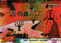 Cards were sold in randomly distributed packets of eight or five cards. In the first printing, the cards featured a blue Topps logo, while in the second printing, the logo was black. One card in each packet would be a randomly chosen foil card. Foil cards from the second printing had a sandpaper finish[1]. Silver foil cards with a smooth finish but a black logo were also produced.