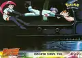 Rest and Relaxation at Last | Coincidentally, Team Rocket's Pokémon are taking a little break from their dirty work, too. In a beautiful green field, bright blue skies and soft fluffy clouds, Meowth, Arbok and Weezing get settled to take a nap. Without warning, Pikachu and Raichu—sparks flying—bolt through the field knocking Meowth, Arbok and Weezing into the air. Looks like Team Rocket's blasting off again! |