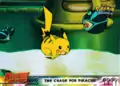 The Chase for Pikachu | As the dark Pokéballs continue to snatch Pokémon left and right, Ash rushes to save Pikachu. Pikachu weaves and darts to evade its evil pursuers, and lets loose with a powerful volley of Thundershock attacks to no avail. An exhausted Pikachu falls from the immense height of Mewtwo's main stairwell, as Ash dives down the exhaust shaft after his friend into the bowels of Mewtwo's Palace. |