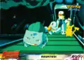 Psychic Showdown | The Pokémon family reunin immediatly turns ugly as the two argue, Mew stating that a real Pokémon's strength comes from the heart and Mewtwo berating Mew for being weak. Mewtwo thrashes Mew with bolts of dark psychic energy, but after careful evading Mew retaliates with its own destructive blasts of colorful psychic energy. High into the night sky, their struggle destroys everything in their paths including the Pokémon arena. |
