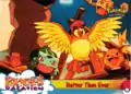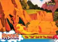The "Tail" End of the Race | Pikachu and Raichu continue to race and pass all sorts of unsuspecting Pokémon. As the two racers turn a corner they run right over the sleeping Charizard's tail! Charizard, being none too happy about this, takes to the race and gets ahead of Pikachu and Raichu. The two electric Pokémon don't notice the large orange dragon in front of them, until Charizard uses its powerful wings to blow Pikachu and Raichu right over a cliff! |