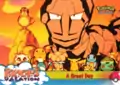 Everyone...Pull!!! | With the miserable Charizard stuck inside of a pretend igloo, Pikachu gathers everyone to join in and yank Charizard out. A rope is tied around Charizard's leg and everybody starts to pull and pull, but as much as they pull and struggle, Pikachu and the gang still aren't strong enough to get Charizard free. Meanwhile, Pikablu, Buru, Cubone and Raichu watch and laugh. |