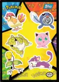 There are 18 sticker cards in this set. On the front of the sticker card is a starry pattern with a removable Pokémon sticker on it and the back of each card contains one out of nine pieces to a puzzle forming an image from the movie.