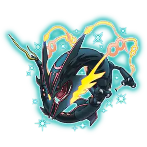 This Shiny Rayquaza was distributed via the Nintendo Network from August 12 to September 14, 2015. It was distributed to promote the release of the Ancient Origins Pokémon Trading Card Game expansion.