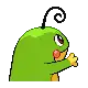 Politoed is a green, bipedal, frog-like Pokémon with yellow hands, belly, throat, and toes. It has a long, curled hair on top of its head and pink cheek spots that are smaller on the female than on the male. There is a green swirl on its belly. Its legs are well developed and it has bulbous toes and fingers.