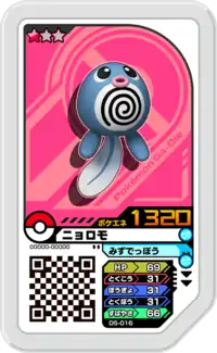 Poliwag (Japanese: ニョロモ Nyoromo) is a Grade 1 Pokémon Ga-Olé disk. It is part of the fifth Dash set.