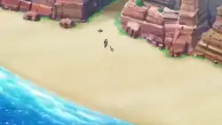 Poni Beach appeared in Thieving and Boss Crabominable. Sun arrived there on his quest to deliver a Mirage Berry to Poni Island's guardian deity, Tapu Fini. Due to multiple Ultra Beasts having been unleashed all over the Alola region, the island had already been evacuated, leaving Sun without anyone that could help tell him where Tapu Fini could be located. Immediately after, a pair of wild Crabrawler knocked Sun down and stole the Mirage Berry he was holding, forcing him to chase after them to get it back.