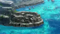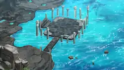 Poni Breaker Coast first appeared in Showdown on Poni Island!, where Ash traveled through it to find Hapu at the Ruins of Hope, only to encounter her and her Mudsdale, which had gone out of control and was running around wildly. Ash noticed something on Mudsdale's foot and had Pikachu use Iron Tail to remove it, revealing that Mudsdale had stepped on a Corsola branch. Hapu felt dejected for having not realized what had been wrong with her Pokémon and asked Ash if she could do something for him in return. Ash, upon noticing Hapu's Z-Ring, asked if he could battle her, but she refused.