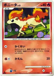 Ponyta (Japanese: ポニータ Ponyta) is a Fire-type Basic Pokémon card. It was first released as one of the DPt-P Promotional cards, later reprinted in the English Arceus expansion.