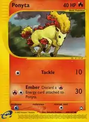 Ponyta (Japanese: ポニータ Ponyta) is a Fire-type Basic Pokémon card. It is part of the Aquapolis expansion.
