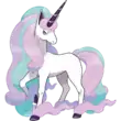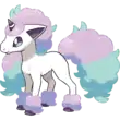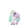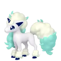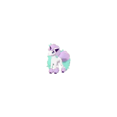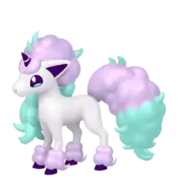 In the Galar region, Ponyta has adapted to forests by being exposed to the life energy from it. It has chalk-white fur; long, purple-and-blue, cloudy fur that is also on top of its dark-purple hooves; purple eyes with light-blue irises; and a purple-and-white horn on top of its forehead.