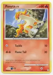 Tackle is a move in the Pokémon games that Ponyta can learn. This card's Pokédex entry comes from Pokémon Diamond.