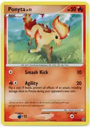 Ponyta (Japanese: ポニータ Ponyta) is a Fire-type Basic Pokémon card. It is part of the Stormfront expansion.
