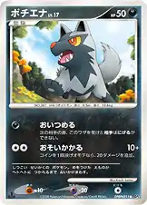 Poochyena (Japanese: ポチエナ Pochiena) is a Darkness-type Basic Pokémon card. It is part of the Legends Awakened expansion.