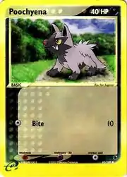 Poochyena (Japanese: ポチエナ Pochiena) is a Darkness-type Basic Pokémon card. It is part of the EX Ruby & Sapphire expansion.