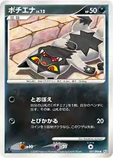 Poochyena (Japanese: ポチエナ Pochiena) is a Darkness-type Basic Pokémon card. It is part of the Platinum expansion.