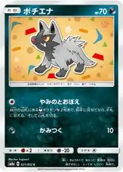 Poochyena (Japanese: ポチエナ Pochiena) is a Darkness-type Basic Pokémon card. It is part of the Team Up expansion.