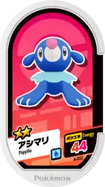 Popplio (Japanese: アシマリ Ashimari) is a Grade 2 Pokémon Mezastar tag. It is part of the fourth set.