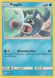 Disarming Voice is a move in the Pokémon games that Popplio can learn. This card's Pokédex entry comes from Pokémon Sun.