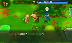 In Explorers of Time, Darkness and Sky, Power Swap is a move with 13PP that ignores accuracy and evasion checks. The user targets Pokémon in the front, ally or enemy, while also cutting corners. The user and target swap Attack and Sp. Attack stat boosts as well as multipliers from Aurora Beam, Memento and Charm. This move is affected by Taunt.