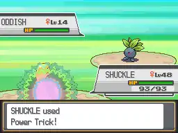 Shuckle's body glows multicolored as its attack and defense stats switch. | ||