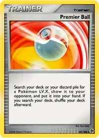 The Premier Ball, debuting in the Great Encounters expansion, allows the player to search their deck or discard pile for a Pokémon LV.X and put it into their hand.