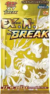 Premium Champion Pack focused on the three main mechanics of the XY BREAK Era: Pokémon-EX, M Pokémon-EX and Pokémon BREAK, featuring reprints of cards from the XY Era while also including a number of new cards. All the cards included within the subset were Reverse Mirror Holofoil with no printed rarities. Each pack contained ten cards instead of five.