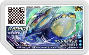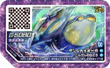Primal Kyogre (Japanese: ゲンシカイオーガ Primal Kaiorga) is a Grade 5 Pokémon Ga-Olé disk. It is part of the fifth Ultra Legend set.
